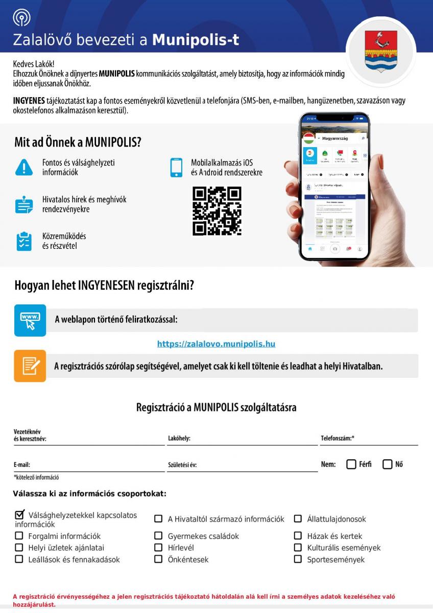AZ INFORMÁCIÓKRA FELIRATKOZHAT: https://zalalovo.munipolis.hu/regisztracio