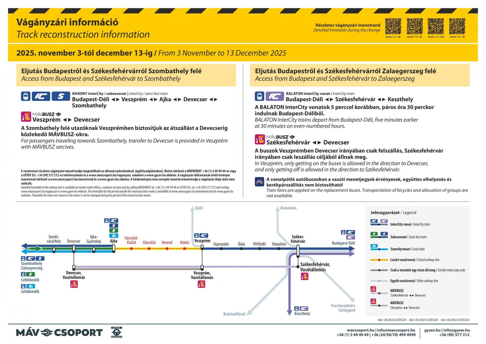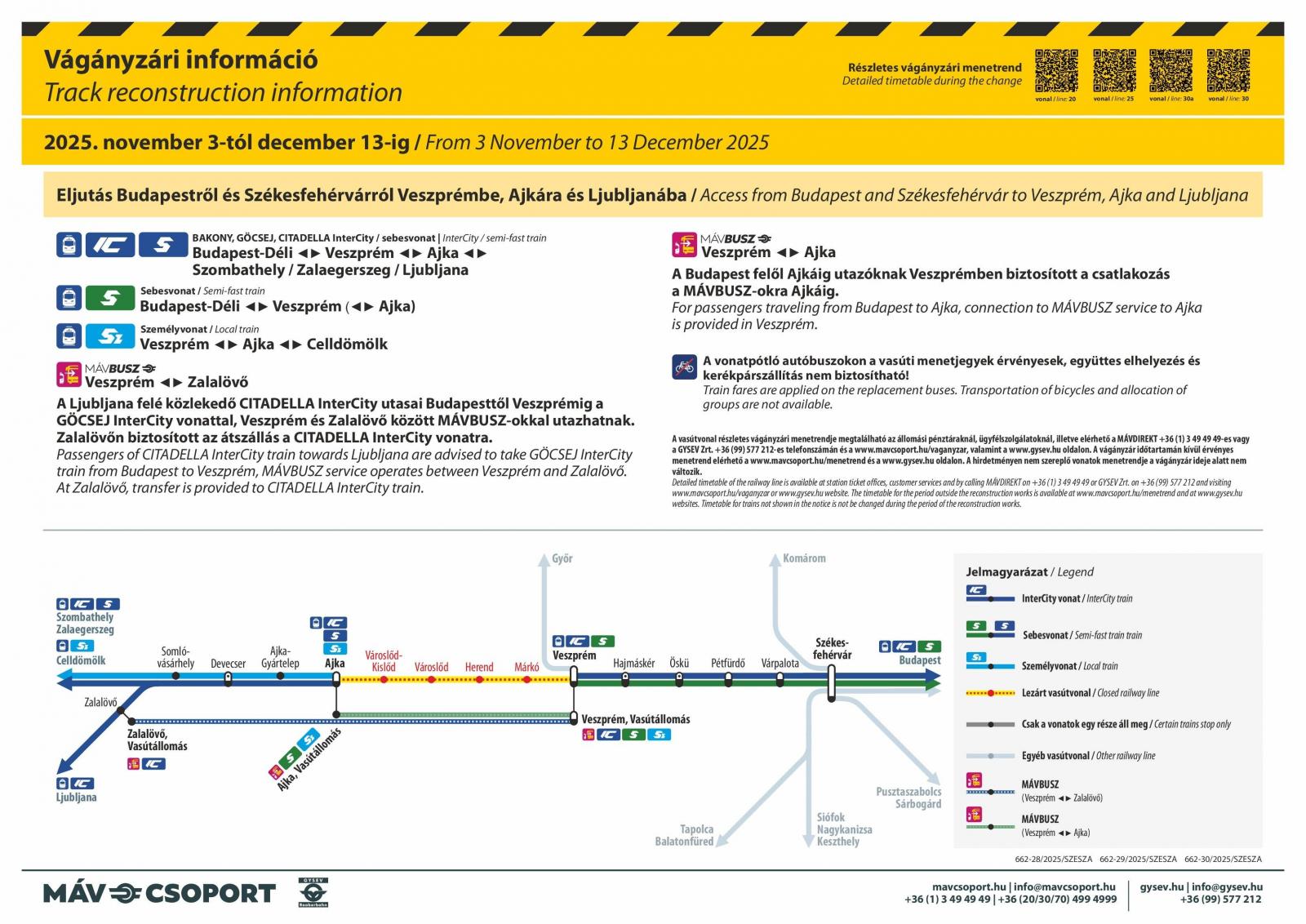 Vágányzári információ - 2025. november 3-tól december 13-ig